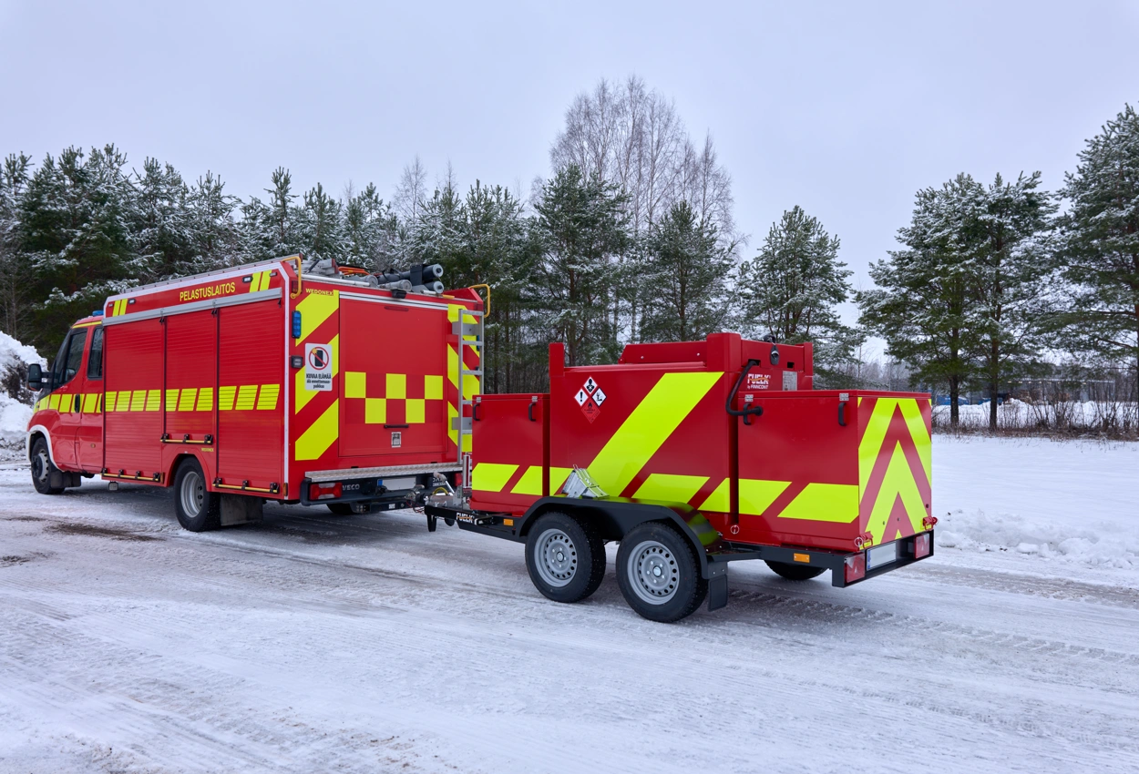 Finncont® PA-kärry on kehitetty viranomaisoperaatioihin, joissa polttoainehuollon on oltava yhtä nopeaa ja liikkuvaa kuin muun kaluston. Rekisteröity ja tieliikennekelpoinen polttoaineperävaunu mahdollistaa polttoaineen turvallisen kuljetuksen ja nopean jakelun suoraan kohteessa – ilman erillistä logistista raskasta kalustoa.